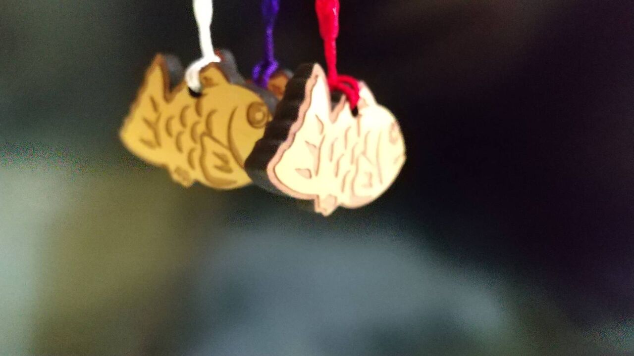 竹の丸みを帯びた曲面がたいやきの立体感をよりリアルに見せてくれる、かなりの完成度のストラップです。
