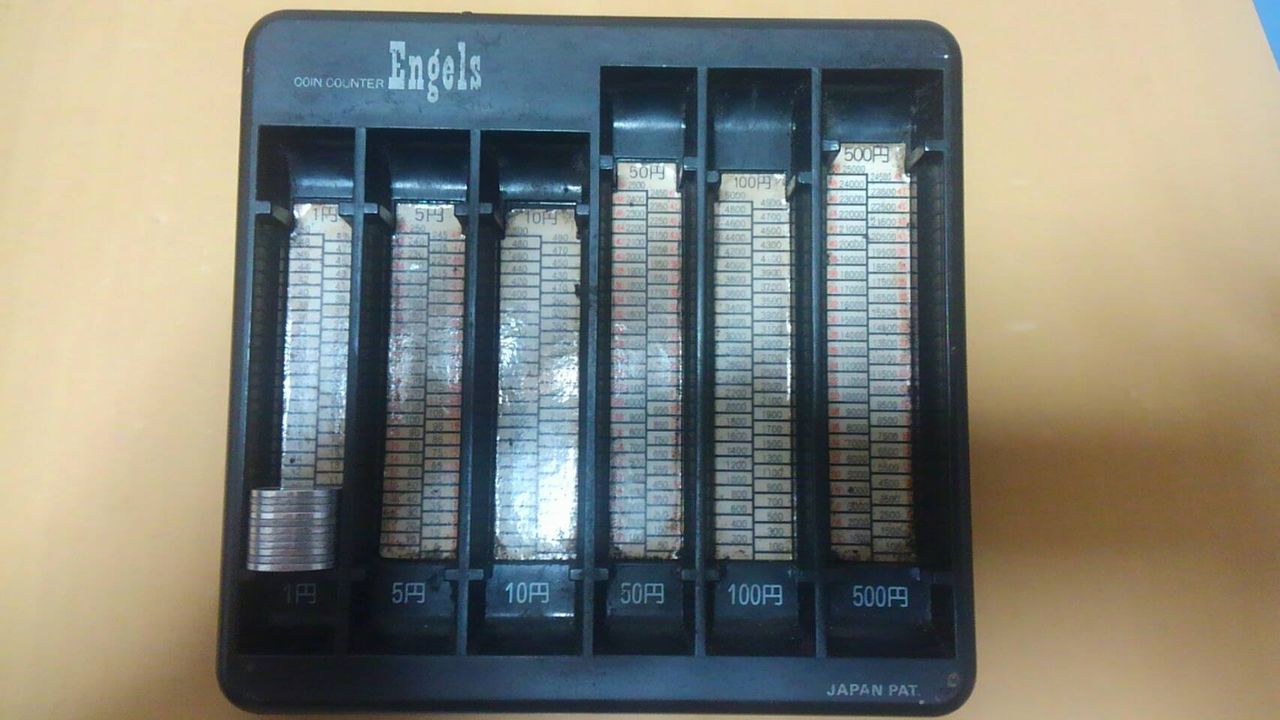 いよいよ小銭です。数えるための道具「エンゲルス」を使って、手作業で数えていきます。